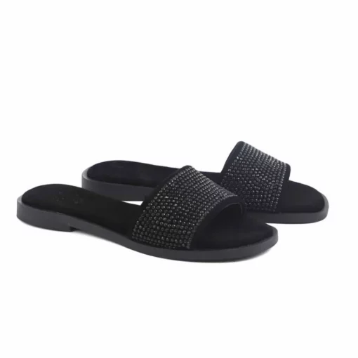 wunderschöne und elegante Pantoffeln aus schwarzem Veloursleder von Apple of Eden