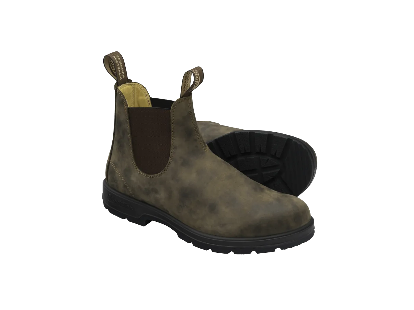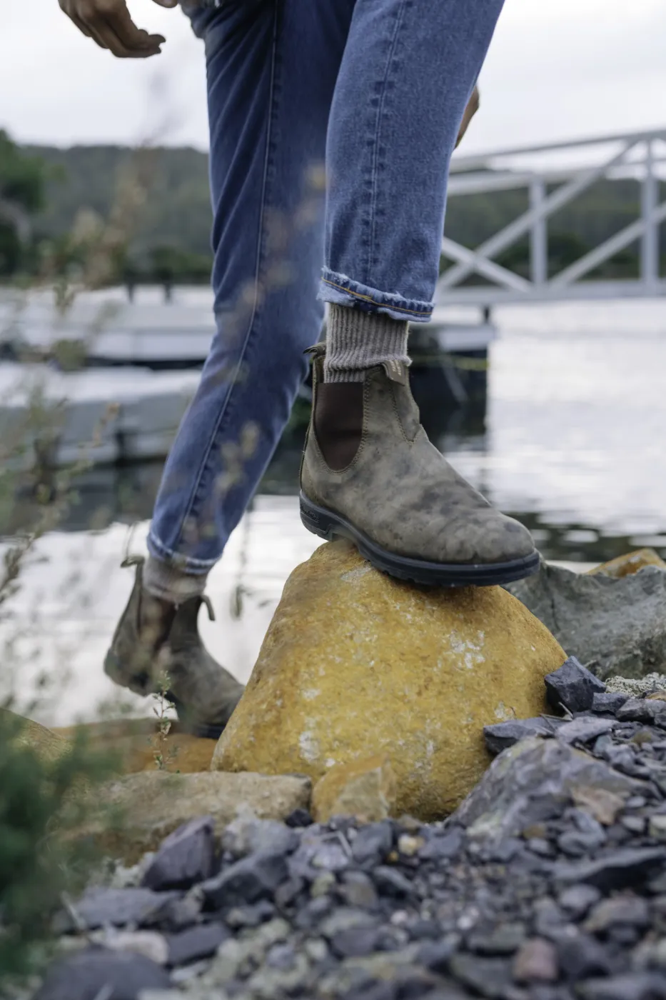 Die Outdoor Boots Blundstone #585 in Rustic Brown überzeugen mit einer eleganten Two-Tone-Optik, die durch die Kombination von tiefem Anthrazit und schwarzem Finish entsteht. Die PU/TPU-Sohle mit Schaumstruktur dämpft jeden Schritt und sorgt dafür, dass die Stiefel federleicht und äußerst bequem sind.