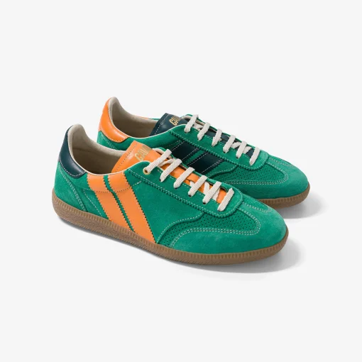 Der Mandarino Janeiro ist ein asymmetrischer Sneaker aus der Pulse-Kollektion, der einen Sportswear-Look mit der Eleganz der Handballpaare der 90er Jahre verschmelzen lässt. Jedes Detail, von der Golfspitze über die perforierte Platte, die Krocketausschnitte, die Strobel-Naht, die gestrickten Schnürsenkel und die geschliffenen Gummisohlen, erinnert an einen anspruchsvollen Retro-Preppy-Stil. Sie sind weich und flexibel und versprechen Komfort und Stil für jedes Outfit. Mit 7 einzigartigen Unterschieden, die es zu entdecken gilt, sind die Pulse nicht einfach nur Sneakers, sondern ein Quantensprung für Ihren täglichen Stil. Dieses Modell wird vollständig in Europa aus nachhaltigen Materialien mit Gütesiegel gefertigt.