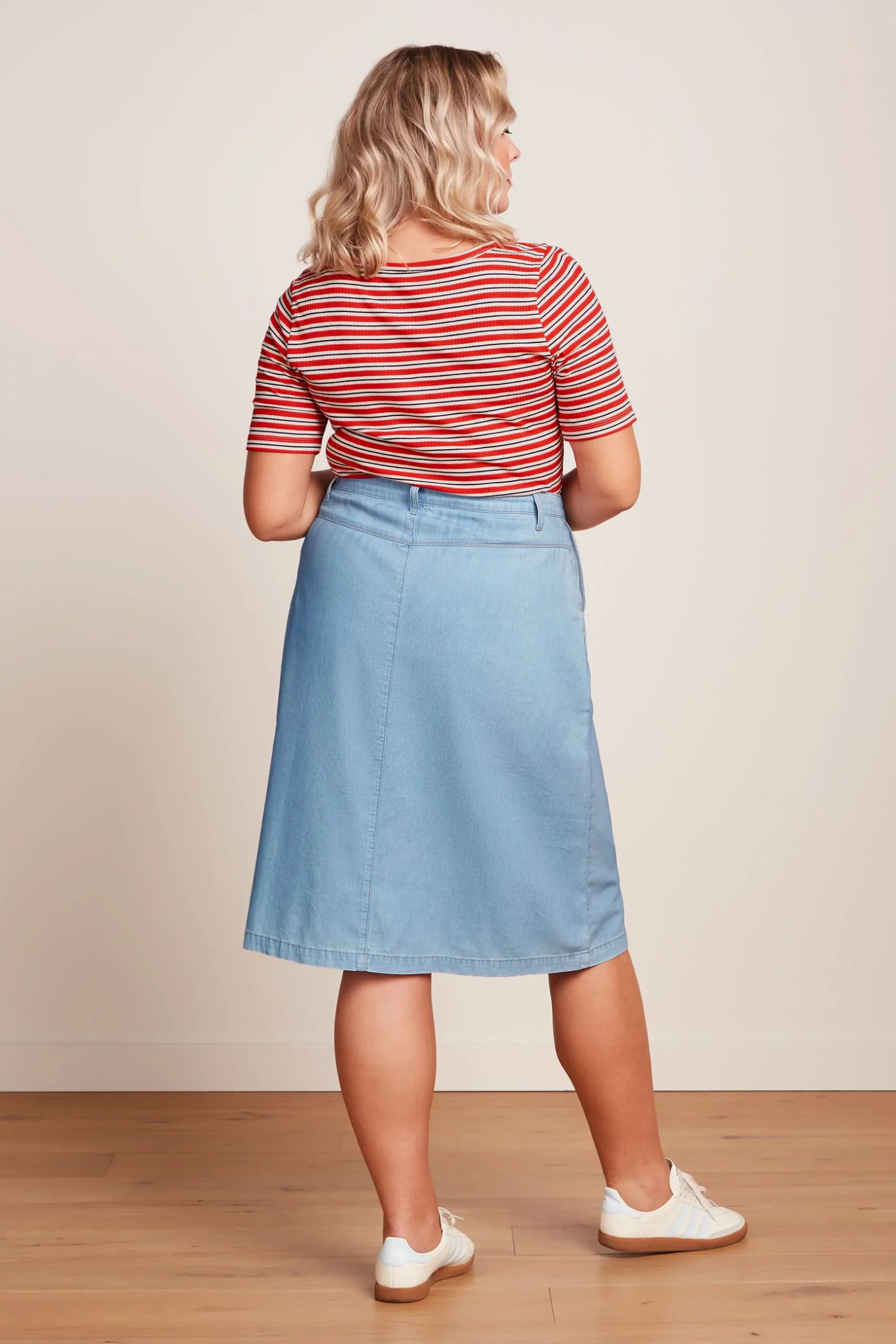 leicht ausgestellter Jeans Midi-Rock aus leichtem Denim von King Louie