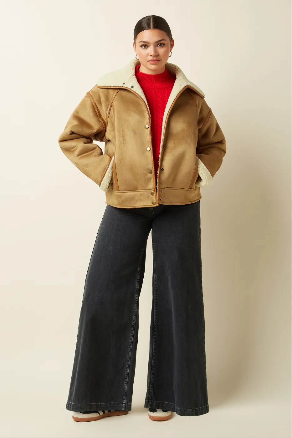 warme Jacke im 80s Style mit Kunstfell und Ziernähten von King Louie